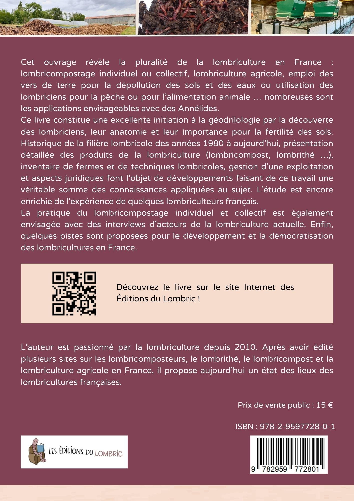 Cet ouvrage témoigne de la pluralité de la lombriculture en France : lombricompostage individuel pratiqué par les familles, lombriculture agricole en plein champ ou dans un hangar, emploi des lombriciens pour la dépollution des sols ou des eaux usées … Nombreuses sont les applications que Lombricultures en France vous propose de découvrir !