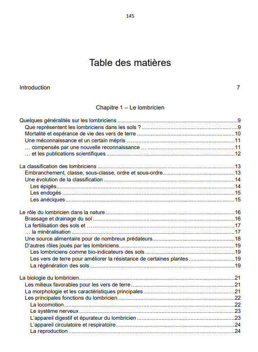 Vous saurez tout sur la classification zoologique du lombricien, sur sa biologie et les formidables services qu’il rend à la nature ! Découvrez aussi un historique de la filière lombricole en France depuis les années 1980, les techniques pour gérer une exploitation lombricole et les aspects juridiques, liés à la production et à la commercialisation du lombricompost.