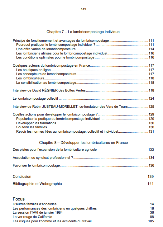 Des interviews et une bibliographie complète figurent également sur Lombricultures en France.